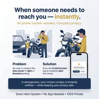 No phone number on any windshield or bike frame. EvoloConnect's relay ensures contactability without personal number exposure.